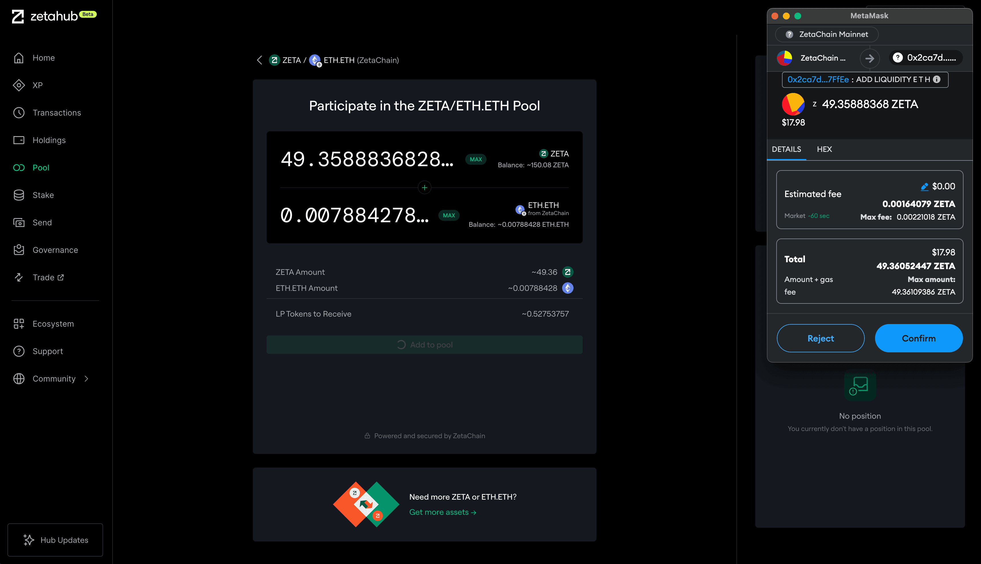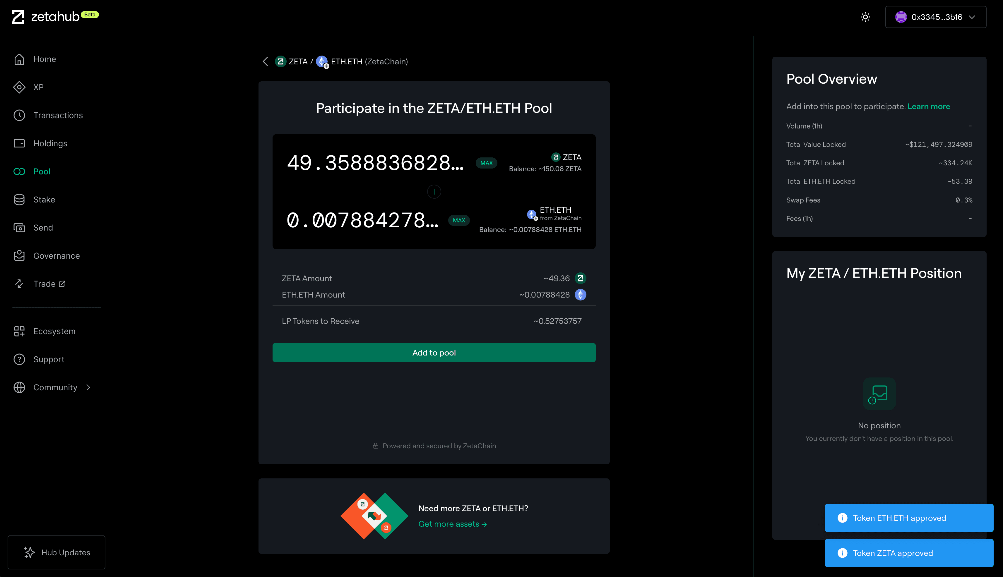 By following these steps, you can easily manage your liquidity on ZetaHub, earning fees and maintaining control over your assets.
